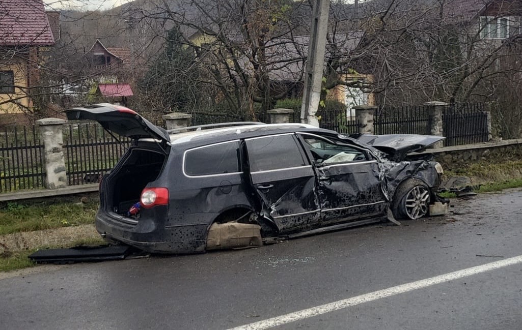 A fost vorba despre un autoturism care a lovit un stâlp de electricitate.