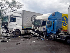 Un accident care se putea solda cu consecinţe dintre cele mai grave a avut loc ieri după-amiază pe şoseaua Piteşti – Râmnicu Vâlcea, fiind implicate trei tiruri.