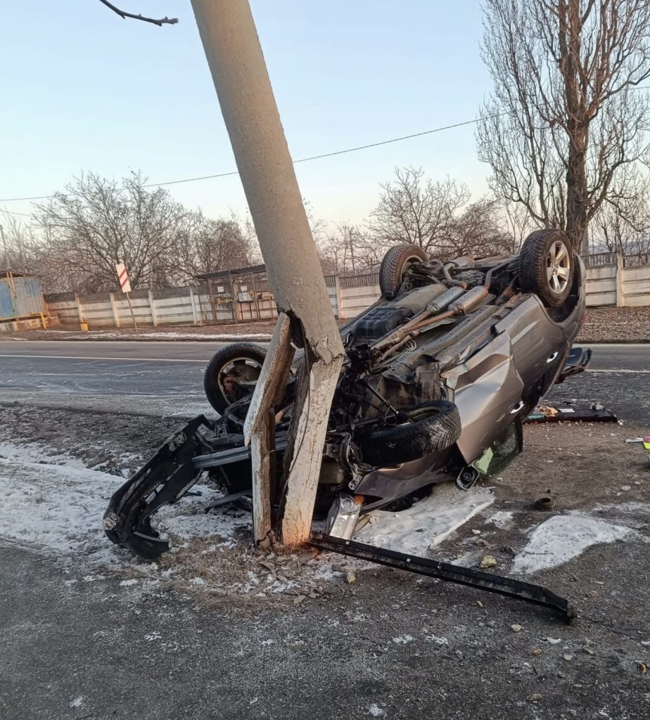 Este vorba despre un autoturism intrat într-un stâlp de gard.