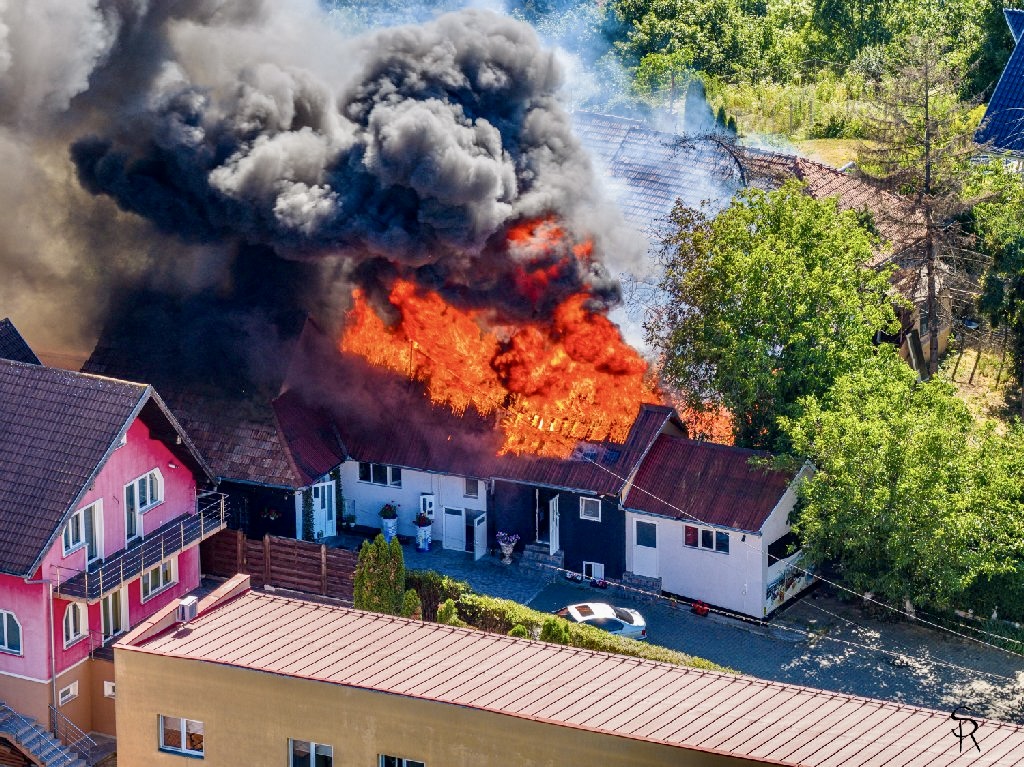 Intervin pompierii de la Detașamentul Pitești cu două autospeciale de stingere o autospecială de intervenție și salvare de la înălțime și un echipaj SMURD de prim ajutor calificat.