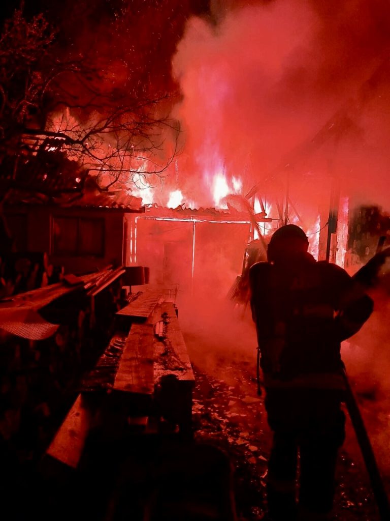 Din primele informații, incendiul se manifestă la o anexă gospodărească cu o suprafață de aproximativ 25 de metri pătrați. Pompierii acționează pentru limitarea pagubelor și stingerea completă a flăcărilor.