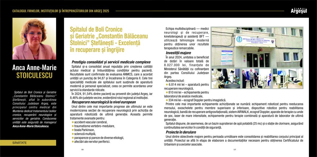 Avem plăcerea de a vă prezenta ediția 2025 a Catalogului Firmelor, Instituțiilor și Întreprinzătorilor din Argeș, publicație ajunsă la cea de-a XXVIII-a apariție. Realizat sub sigla ARGEȘ PRESS, marcă înregistrată la OSIM, Catalogul s-a impus ca un brand solid în peisajul editorial românesc, beneficiind de experiența ziarului „Argeșul”, prezent de 36 de ani în presa tipărită și de 27 de ani în mediul online. Catalogul Firmelor, Instituțiilor și Întreprinzătorilor din Argeș reunește anual cele mai importante instituții publice și private, companii, întreprinzători și personalități locale, remarcabile prin performanță, stabilitate și contribuția lor la dezvoltarea județului.