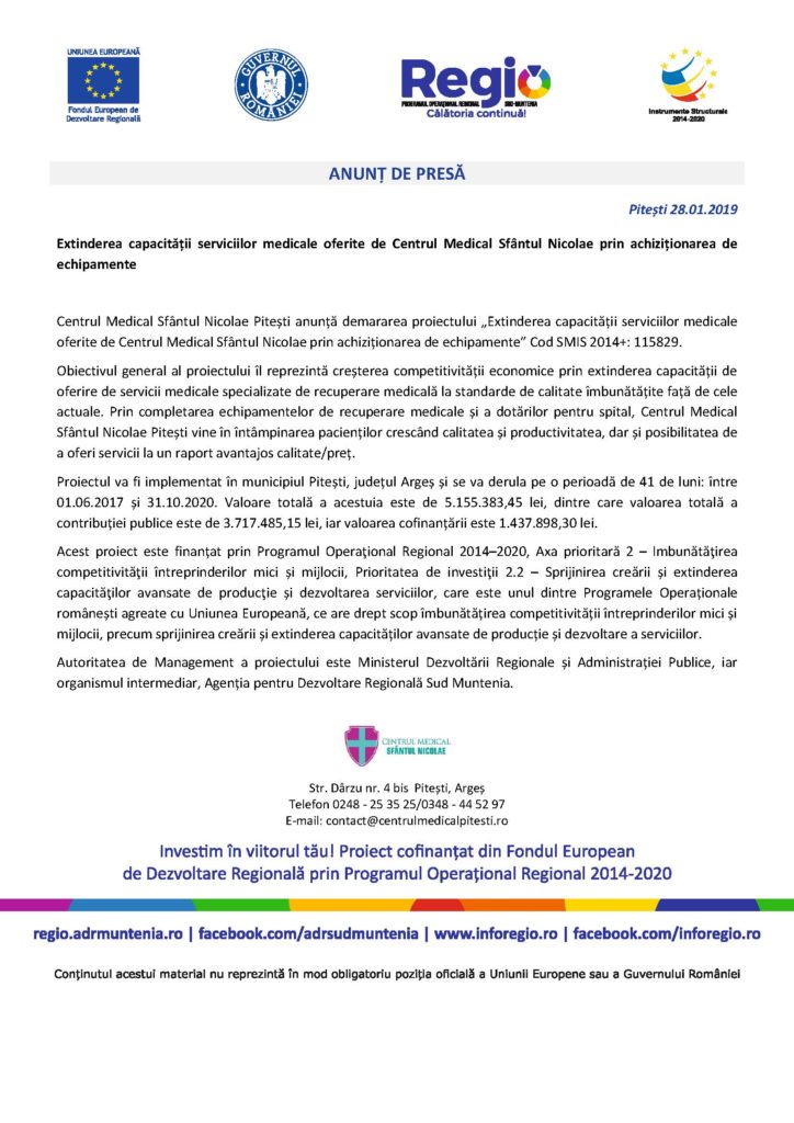 Advertisement FUNDATIA ARI titular al proiectul ,,Centru de ingrijire Paliativa ARI”, propus a fi amplasat în orasul Stefanesti, str. Valea Mare... Read more