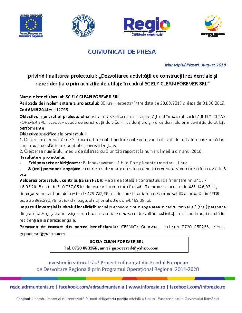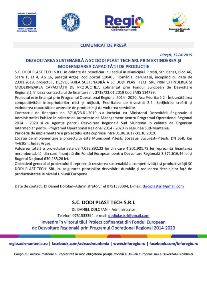 Advertisement PROFIT ECO TGP SRL anunţă publicul interesat asupra depunerii solicitării de emitere a acordului de mediu pentru proiectul “Infiintare f... Read more