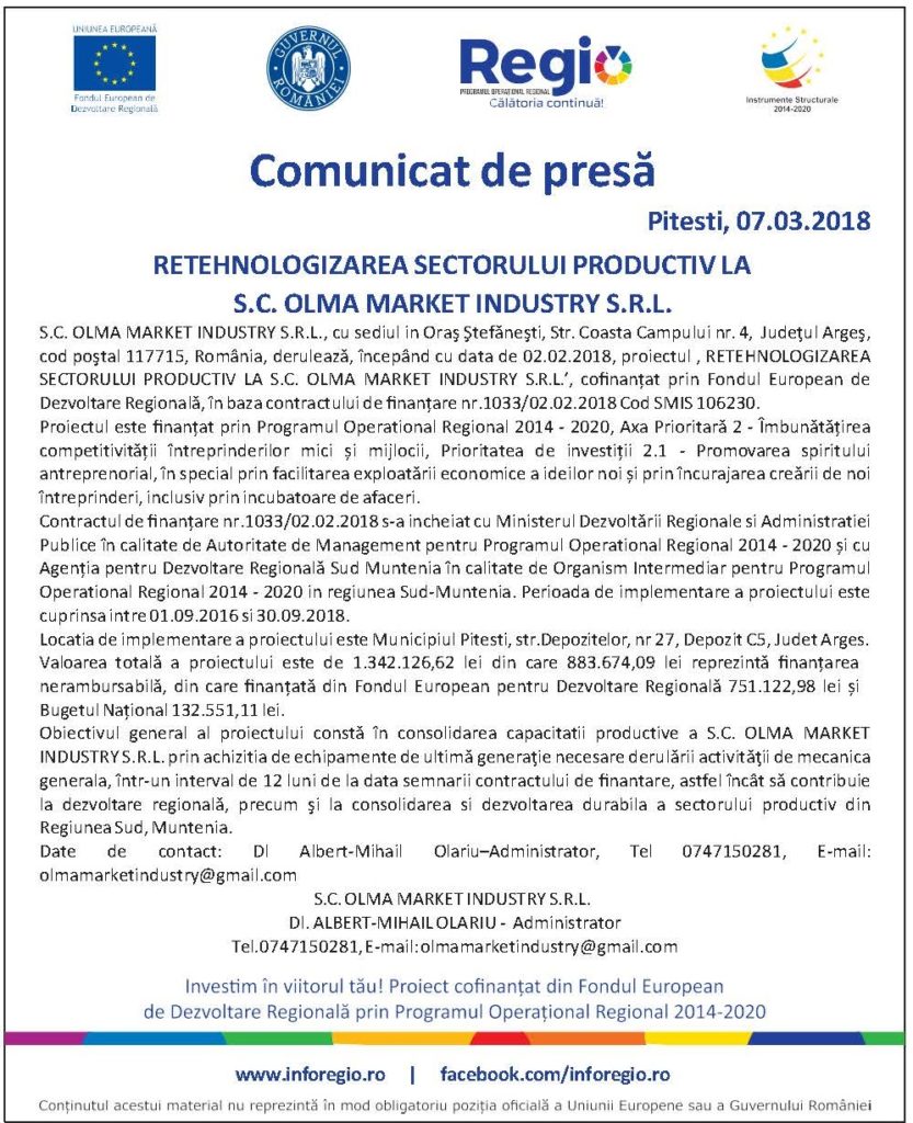 Advertisement SC GESTAMP BEYCELIK ROMANIA S.R.L. cu sediul in Comuna Darmanesti, Sat Piscani, Strada Principala, nr.58, judetul Arges, prin cererea de... Read more