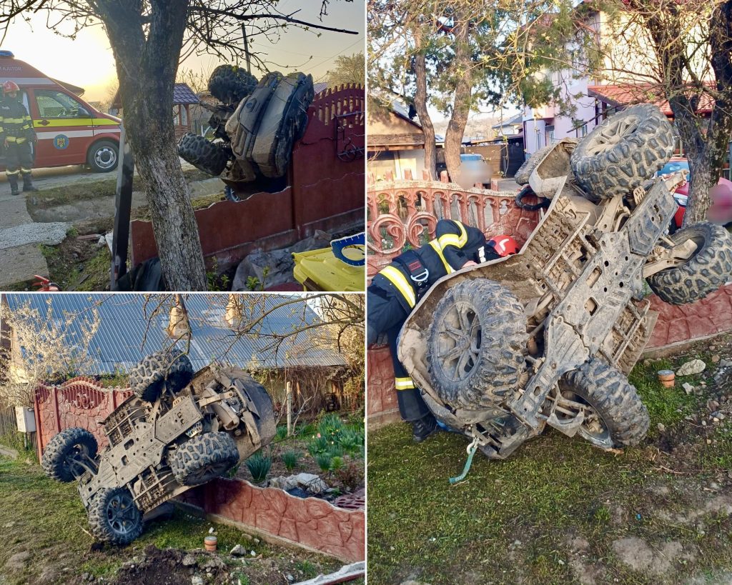 Un tânăr de 25 de ani, din Buzoești, aflat la volanul unui ATV, nu ar fi adaptat viteza într-o curbă ușoară la stânga, pierzând controlul direcției și intrând în coliziune cu gardul unei gospodării.