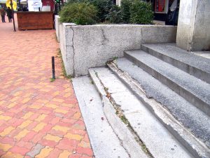 În vecinătatea pasajului pietonal subteran „Magnolia” există de zeci de ani câteva trepte pe care trebuie să le urce oricine vrea să intre în magazinul „Fortuna”. Sau, mai exact… amintirea lor. Poate vechimea, vibraţiile provocate de traficul de pe bulevardul. I.C. Brătianu sau calitatea îndoielnică a materialelor folosite au dus la degradări vizibile de la distanţă. Lăsând la o parte latura estetică, pseudo-treptele s unt un real pericol pentru cei neatenţi sau grăbiţi care-şi pot rupe picioarele dacă vor călca pe partea „mişcătoare”, bucăţi de beton desprinzându-se sub tălpile trecătorilor.