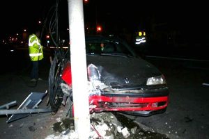 Un poliţist argeşean şi-a văzut moartea cu ochii după ce s-a urcat băut la volan şi s-a izbit de un stâlp.
