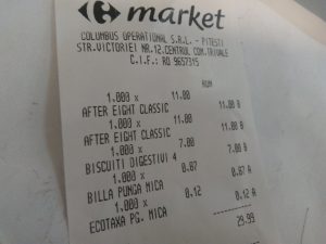 La furculițele de unica folosință prețul de la raft era de 1.5 lei.. iar pe bon 3.9 .. la 10 seturi cat am cumpărat eu .. o diferență enormă ..