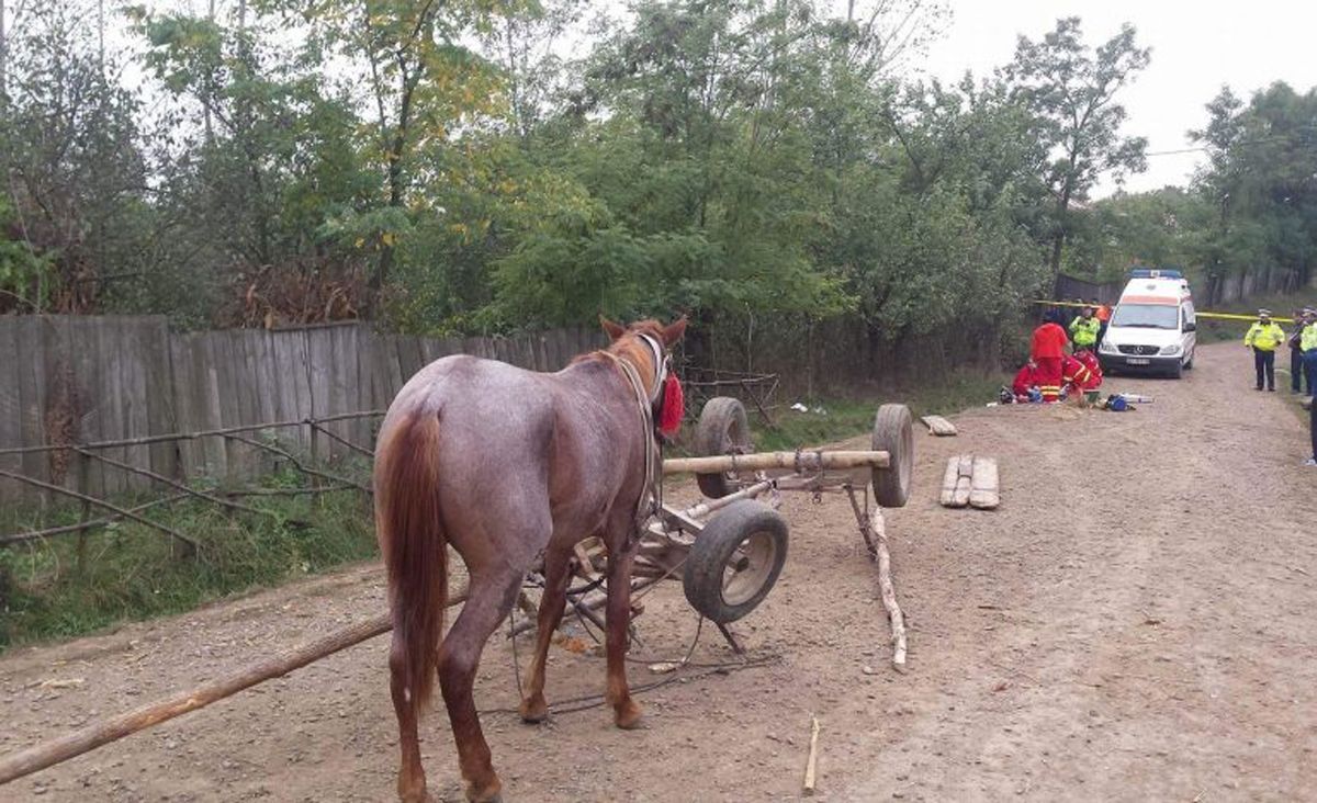 O căruţă plină cu fân condusă de Petre P., de 20 de ani, circula pe DJ 731 dinspre Nucşoara către Corbi. Sus, pe încărcătură, se aflau Petruţ B., de 44 de ani, şi Iuliana S., de aceeaşi vârstă, ambii din Corbi. De asemenea, peste fân fusese pusă o tablă, cel mai probabil pentru ca fânul să nu se împrăştie în timpul transportului. Din câte se pare, când căruţa a trecut peste o denivelare, foaia de tablă a alunecat pe asfalt şi se presupune că zgomotul produs a speriat calul, care s-a smucit în ham şi a luat-o la galop. Luaţi prin surprindere de comportamentul animalului de tracţiune, cei doi oameni s-au dezechilibrat şi au căzut de la o înălţime de peste doi metri pe carosabil. Ambii au fost răniţi, iar la faţa locului au sosit o ambulanţă SMURD de terapie intensivă mobilă şi o alta de prim ajutor calificat. Iuliana S. suferise mai multe traumatisme, însă niciunul nu ridica probleme deosebite. În ce-l priveşte pe Petruţ B., starea lui este cu mult mai gravă. La sosire, echipele medicale au constatat că prezenta otoragie (sângera din urechi), ceea ce poate conduce la suspiciunea că a suferit o fractură de craniu. Bărbatul, care intrase în comă, a fost transportat la Spitalul Judeţean unde a fost diagnosticat cu hematom subdural şi contuzie pulmonară, iar medicii depun eforturi pentru a-i salva viaţa.
