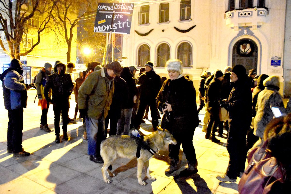 Aseară, grupul primilor protestatari a apărut pe ora 19.30 şi în aproximativ o jumătate de oră se strânseseră vreo 80-85 de persoane. Oamenii s-au grupat întâi lângă Biserica „Sf. Gheorghe”, apoi au mers pe platoul din faţa Prefecturii susţinând că demisia lui Florin Iordache, fostul ministru al Justiţiei, nu este suficient şi că trebuie să plece tot Guvernul Grindeanu. Scandând „Vrem program de guvernare, nu penali cu condamnare!”, „Vrem justiţie, nu corupţie!”, „În democraţie, hoţii stau la puşcărie!”, „Vrem spitale pentru noi, puşcărie pentru voi!”, „DNA să vină să vă ia!”, „Mai am un singur dor, Dragnea scriitor!”, „Iordache, ia-i pe toţi, că sunt ca tine hoţi!”, dar mai ales „Jos Guvernul!”, „Demisia!”, „PSD, ciuma roşie!”, „Noaptea, ca hoţii”, „Cine nu sare nu vrea schimbare!”, protestatarii au pornit în marş spre Piaţa Primăriei, unde au cântat Imnul de Stat. Printre participanţii de duminică seară era şi o familie care venise cu câinele la manifestaţia la fel de paşnică precum anterioarele. Echipe ale jandarmeriei, poliţiei, pompierilor şi SMURD erau din nou prezente, dar n-a fost nevoie de intervenţia lor. La închiderea ediţiei protestul, care duminică s-a încheiat puţin după ora 21, era în derulare.