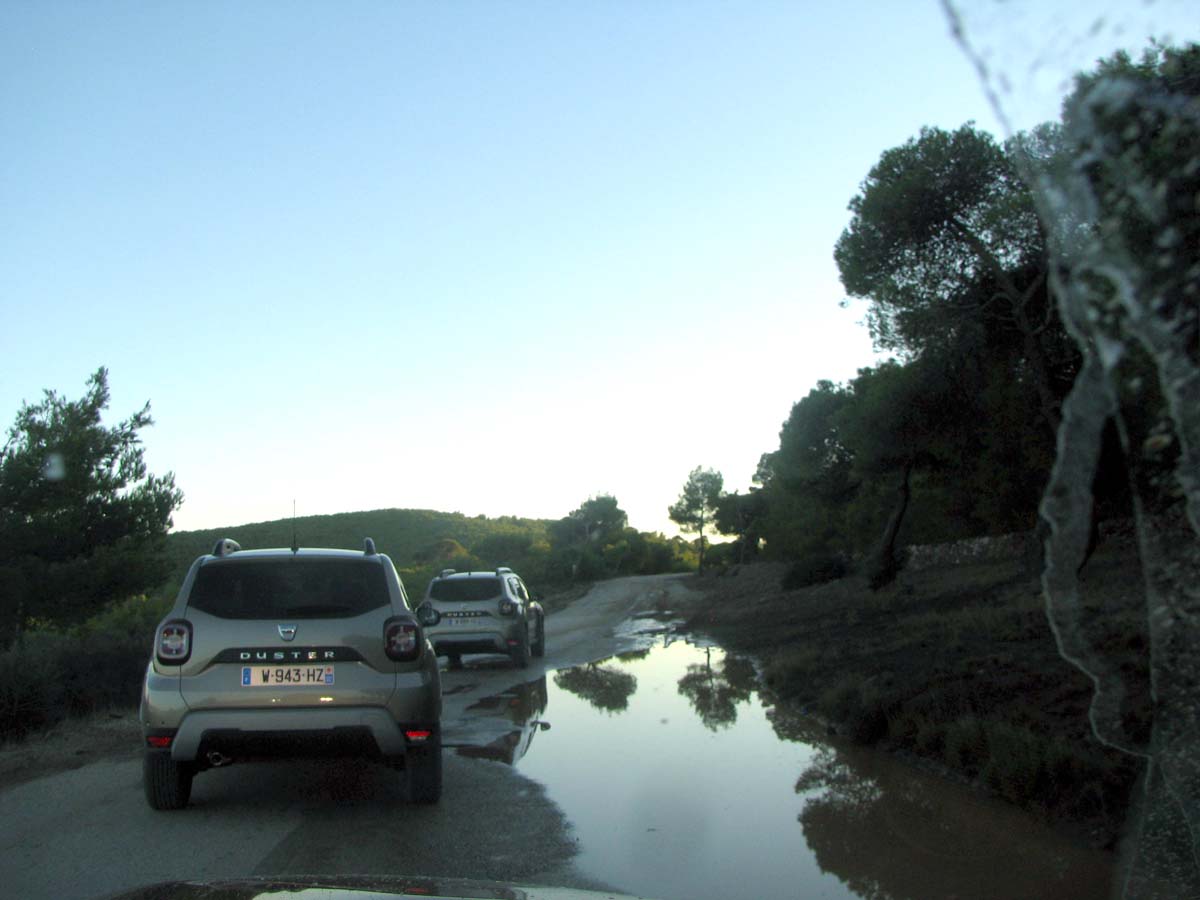 Imediat ce am plecat de pe loc, sistemul de navigaţie a şi început să de indicaţii, în limba română, cu privire la traseul pe care-l aveam de urmat. Atât de bine era pus la punct, încât chiar şi un novice se descurca fără probleme şi fără teama de a rata ruta. Şi dacă o rata, tot navigaţia intervenea prin reconfigurarea rapidă a traseului. Pentru a putea constata cum se comportă noul Duster, au fost incluse diverse porţiuni de drum, de la autostradă la drumuri expres, naţionale şi mai ales locale. Fiind voba despre testarea unui SUV conceput să facă faţă celor mai dificile situaţii, prin stabilirea unor trasee în majoritate pe drumuri neasfaltate de la marginea localităţilor – un fel de centuri ocolitoare – organizatorii şi-au atins scopul propus. Am traversat grădini şi bălţi, proprietăţi şi livezi neîmprejmuite, am urcat pe dealuri străbătând zone accidentate, am coborât pe văi rulând pe şleauri sau pe piatră extrem de alunecoasă. Din loc în loc am întâlnit turme de oi şi ciobanii se uitau miraţi la noi, parcă întrebându-se ce-om căuta pe-acolo.