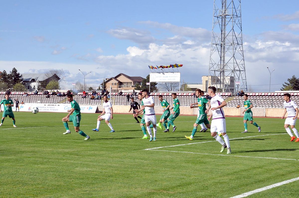 Oaspeţii au deschis scorul dintr-o fază fixă cu aproape 20 de minute înainte de finalul primei reprize: după un corner executat de pe partea stângă, mijlocaşul Rareş Lazăr a trimis în plasă cu un şut pe jos, din interiorul careului. Mioveniul şi-a dublat avantajul pe tabela de marcaj cu 21 de minute înainte de finalul timpului regulamentar. Iamandi a executat perfect o lovitură liberă de la 25 m, iar balonul s-a dus în vinclul porţii apărate de Udeanu. Gazdele au redus din diferenţă două minute mai târziu prin Robert Grecu, care a transformat o lovitură de la 11 metri. În minutul 78, alb-violeţii au restabilit egalitatea prin Oancea. În urma acestui rezultat de egalitate, SCM Piteşti are un avans de 19 puncte faţă de ocupanta locului secund, FC Voluntari II, care a stat în aceatsă etapă.
