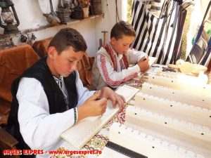 În vârstă de 12 ani, Radu a lucrat cu măiestrie o ladă de zestre reprezentativă pentru zona Berevoeşti, iar Cristinel, mai mare decât fratele său cu un an, a meşterit cu artă un dulăpior specific Nucşoarei.