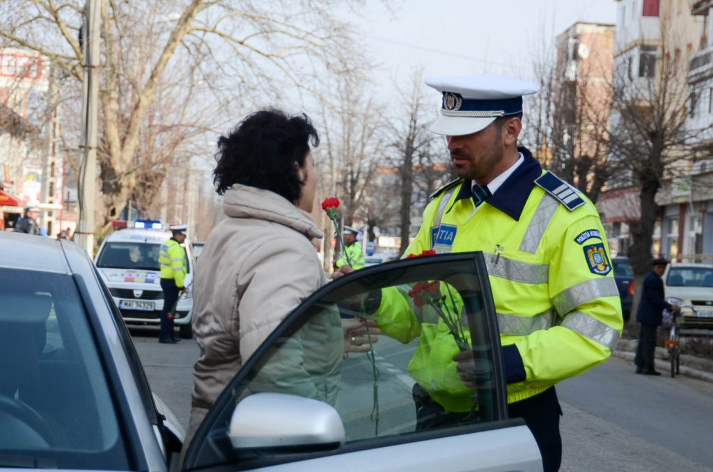 Pentru a marca Ziua Internaţională a Femeii, agenţi ai formaţiunii rutiere Costeşti şi ai Poliţiei Locale Piteşti au ieşit la „vânătoare” de şoferiţe. Ca şi de Mărţişor, oamenii legii le-au tras pe dreapta pe doamnele şi domnişoarele aflate în trafic şi le-au solicitat documentele de identitate, nu şi permisul de conducere. Oarecum derutate pentru că nu ştiau să fi încălcat vreo regulă de circulaţie, ele au aşteptat în autoturism să afle motivul opririi. Şi l-au aflat: toate au primit garoafe şi lalele şi câte o felicitare în semn de respect de la poliţişti, împreună cu urări de sănătate şi să fie ferite de evenimente nedorite. Gestul le-a luat prin surprindere pe şoferiţele „contraveniente”, care le-au mulţumit agenţilor rutieri pentru surpriza plăcută de care au avut parte de ziua lor, iar cele mai puţin timide i-au răsplătit şi cu câte o îmbăţişare.