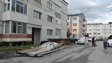 * Vântul a suflat acoperișuri și a doborât copacii de pe șosea;
