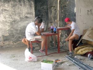 Pe unii i-am dibuit în obscuritatea scenei. Am aflat cu stupoare că sunt… minori. Unul trăgea dintr-o ţigară, altul gâlgâia o sticlă de suc, celălalt spărgea nişte alune. Un anunţ de angajări postat pe net a „mărit” echipa constructorului cu aceşti copii. Patru liceeni, mi-e milă de ei, râcâie pereţii jigăriţi ai obiectivului devastat. Niciunul n-are 18 ani. Doi dintre ei învaţă la Colegiul Tehnic „Neniţescu”, unul la Liceul Tehnologic „Dacia” şi altul la un liceu din Câmpulung. Pentru aceşti copii, reabilitarea grădinii de vară este doar o… slujbă de vacanţă, un bun prilej de a face rost de bani, pentru a se înnoi la începerea şcolii.