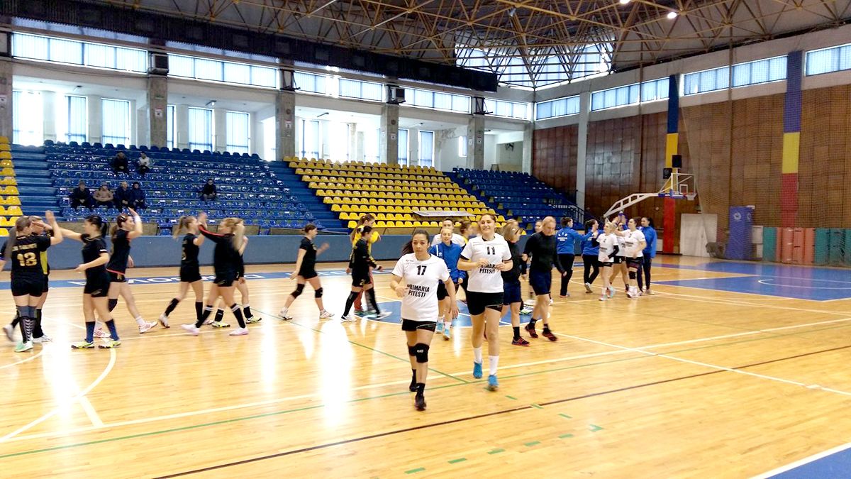 Confruntarea disputată la sala de sport a Universităţii Piteşti, de pe strada Gheorghe Doja, a fost la discreţia elevelor lui Paul Mihăilă şi Victor Neagu. În confruntarea din tur, disputată în Moldova, cele două echipe au terminat la egalitate, scor 27-27.