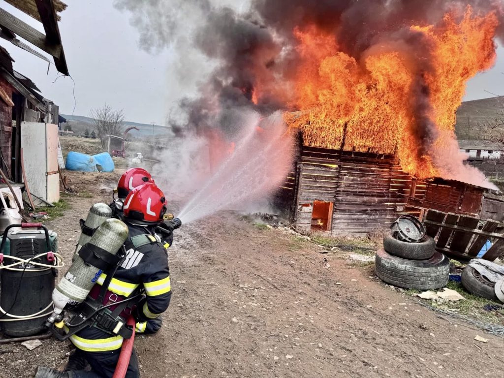 Pompierii din Sebeș intervin pentru stingerea unui incendiu izbucnit la o anexă gospodărească din localitatea Daia Română, marți, 10 februarie.