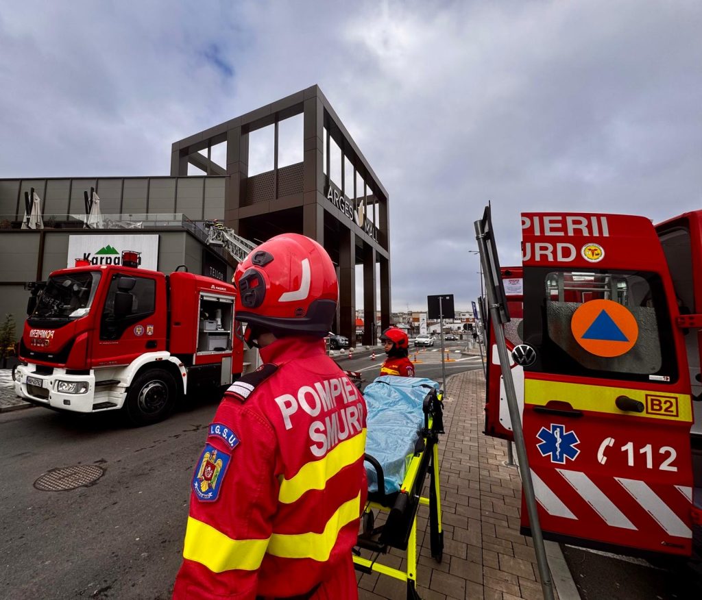 Un exercițiu amplu cu forțe și mijloace de intervenție a avut loc astăzi, începând cu ora 10:15, pe amplasamentul centrului comercial Argeș Mall din municipiul Pitești.