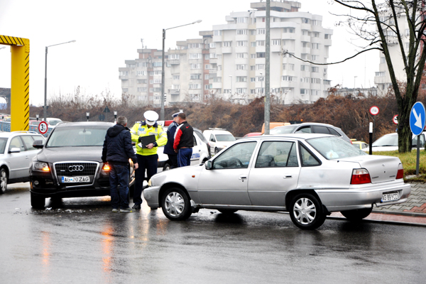 În această după-amiază, un accient de circulaţie a avut loc în sensul giratoriu de la pasajul rutier de la Podul Viilor. Din primele informaţii rezultă că un şofer care se afla la volanul unui Cielo, în loc să respecte sensurile de deplasare a intrat pe contrasens şi a a tamponat un Audi Q3. În urma impactului, unul dintre conducătorii auto a avut nevoie de îngrijiri medicale, pe care le-a primit de la echipa medicală de pe ambulanţa SMURD de prim ajutor calificat sosită la faţa locului. Pe parcursul cercetărilor traficul s-a desfăşurat cu dificultate, iar agenţii de circulaţie legii au deschis dosar penal şi întreprind cercetări pentru a stabili exact cum s-a produs evenimentul.