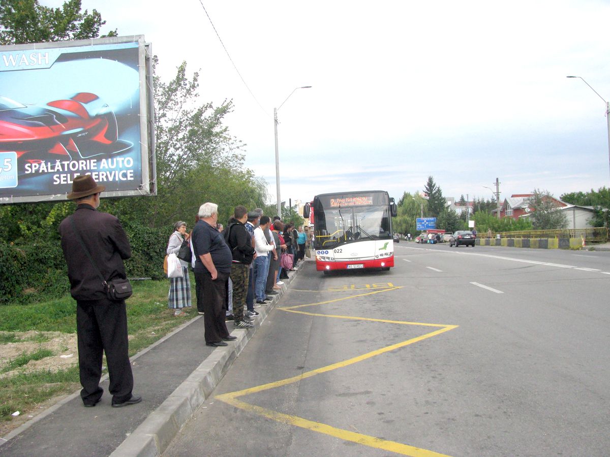Ca să ajungă în prima staţie din Piteşti (dinspre Bascov), oamenii care se deplasează în oraş cu mijlocul de transport în comun merg pe jos, cu nodul în gât, câteva sute de metri. După ce traversează şoseaua intens circulată, navetiştii îşi continuă drumul pe pod încolonaţi ca la… şcoală, doi câte doi. Cu „încălzirea” făcută în soare, pe ploaie sau în vânt, călătorii îşi trag sufletul în staţia improvizată pe un trotuar îngust (nu este acoperită, nu are măcar o bancă!).