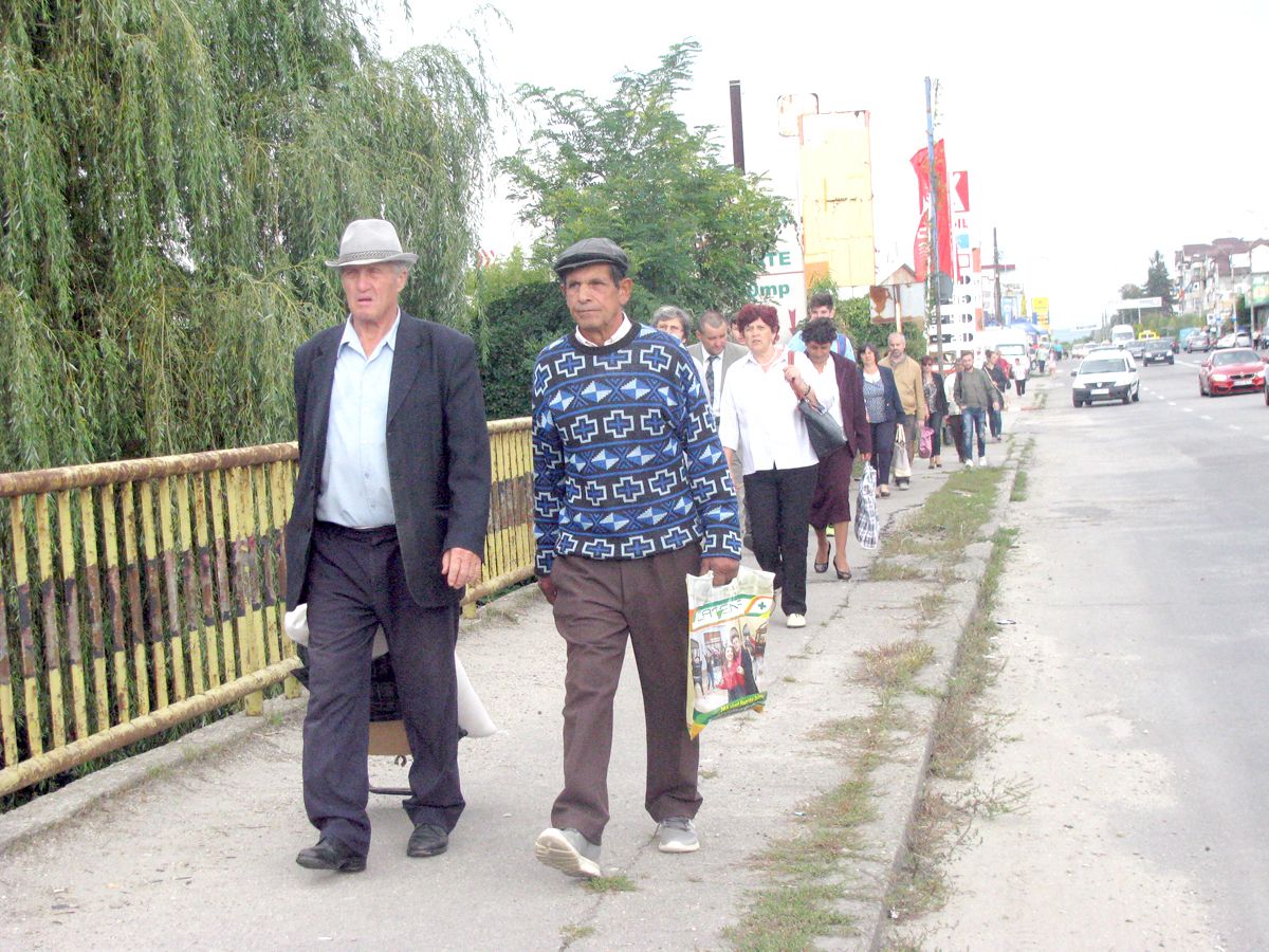 În ultima staţie din Piteşti, acelaşi scenariu: cu sacoşe şi paporniţe, „cu căţel şi pucel”, pasagerii-cărăuşi îşi continuă drumul. Tot pe jos.