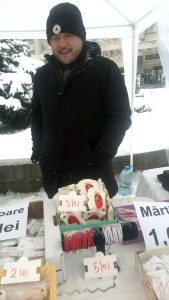 Unul dintre comercianţi este… japonez. Căsătorit cu o româncă şi stabilit de zece ani în România, Jun, în vârstă de 40 de ani, are trei copii. Bărbatul din Ţara Soarelui Răsare se ocupă cu comerţul, dar îşi încearcă pentru prima oară norocul în afacerea cu mărţişoare. Japonezul întâmpină primăvara românească oferindu-le clienţilor brăţări împletite manual, accesorizate cu simbolul infinitului. Un astfel de accesoriu costă 5 lei.