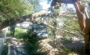 Chiar dacă nu a plouat, vântul a suflat cu putere ieri după-amiază, context în care un copac a fost smuls din rădicini şi doborât peste un autoturism parcat pe o stadă din Merişani. În cădere, copacul a rupt firele reţelei electrice şi aproximativ 80 de consumatori au rămas fără curent electric. Nicio persoană nu a fost rănită şi un echipaj ISU a intervenit pentru degajarea copacului.