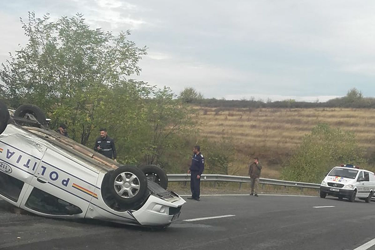 Un poliţist a coborât să supravegheze traficul, în timp ce autovehiculul era scos din şanţ, iar colegul său a rămas în maşina de serviciu, să completeze documentele de constatare. În acest context, dinspre Piteşti urca un BMW condus de George B., de 36 de ani, din Bucureşti. Fiindcă nu a adaptat viteza la configuraţia drumului, el a pierdut controlul volanului, iar BMW-ul a izbit violent Loganul poliţiei, pe care l-a răsturnat cu roţile-n sus, iar agentul din maşină s-a lovit la cap. Din fericire, acesta n-a avut leziuni grave. Întrucât n-au fost victime, incidentul a fost instrumentat doar ca tamponare.