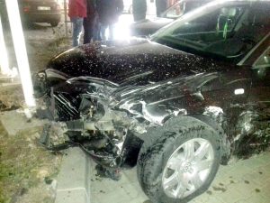 Accidentul a avut loc în faţa staţiei de distribuţie carburanţi aparţinând unei firme din municipiul de la poalele Mateiaşului, unde şoferul unei Skoda Octavia, care venea dinspre Colegiul Teoretic „Dan Barbilian”, a încercat să întoarcă maşina. Din cauză că nu s-a asigurat la schimbarea direcţiei de mers, împricinatul s-a tamponat cu un Audi, care circula regulamentar din sens opus. Din impact, cel de-al doilea autoturism a fost împins într-un stâlp din care a ricoşat şi s-a oprit într-un gard de beton. Conducătorii auto au scăpat teferi, iar agenţi ai Biroului Rutier Câmpulung i-au verificat pe ambii şoferi cu etilotestul. Aparatul a indicat că bărbatul de la volanul Skodei era băut şi avea o concentraţie de 0,47 mg/l alcool pur în aerul expirat, context în care a fost dus la spital pentru recoltare de probe biologice şi a rămas fără permis 90 de zile.