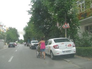 Carucioare cu copii sau handicapati se vad mereu pe carosabil.