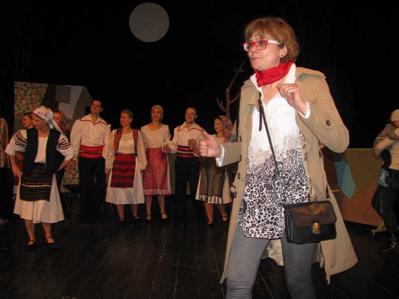 Conferinţa de presă organizată, ieri, pentru prezentarea evenimentului s-a suprapus cu repetiţiile. Jurnaliştii n-au avut încotro şi au intrat în… poveste, cea care i-a împins de la spate fiind Luminiţa Borta. De voie, de nevoie, am urcat şi eu pe scenă şi am jucat de mi-au sfârâit călcâiele pe ritmuri populare, prinzându-mă în horă alături de regizori, scenografi şi actori. Dacă aţi auzit „Buf!”, eu am fost! La pasul înapoi (căci doi au fost înainte) am nimerit cu piciorul un obiect din decor. M-am speriat de drăcimea care a spart hora. Şi am dărâmat buşteanul. Cu tot cu securea înfiptă în dânsul. Nu puteam să mă împiedic şi eu de… burduful de bivol plin cu bani pe care Scaraoschi i l-a dat pustnicului Dănilă să se cărăbănească? Dar nu vă mai spun povestea, fiindcă vreau şi eu, precum oamenii teatrului din Piteşti, să mergeţi la spectacol.