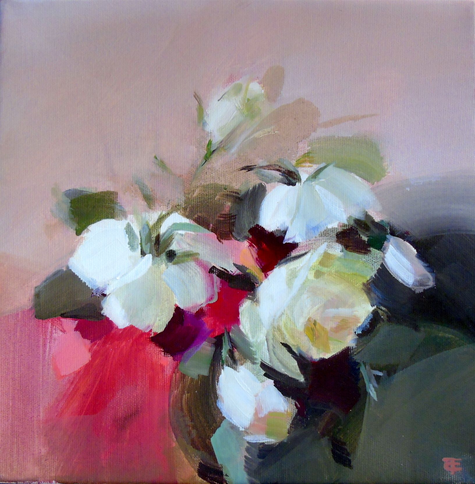 Şi aş mai spune că dacă ar fi să emitem judecăţi (ceea ce nu e cazu’, da’ hai s-o facem!) pictura sa ar putea fi caracterizată ca fiind influenţată de stampele orientale, de arta plastică din “ţara dimineţilor liniştite” (sau din “ţara cireşilor înfloriţi”) dar mai ales din şcoala chineză puternic esenţializantă a lui Qi Baishi. Aş putea-o chiar bănui pe artista piteşteană că ar avea ceva înrudiri pe AND-ul artistic cu marele artist chinez (şi el insuficient cunoscut pe meleaguri mioritice), pentru că se pot observa atât similitudini tematice cât şi în maniere asemanătoare de tratare a subiectelor.