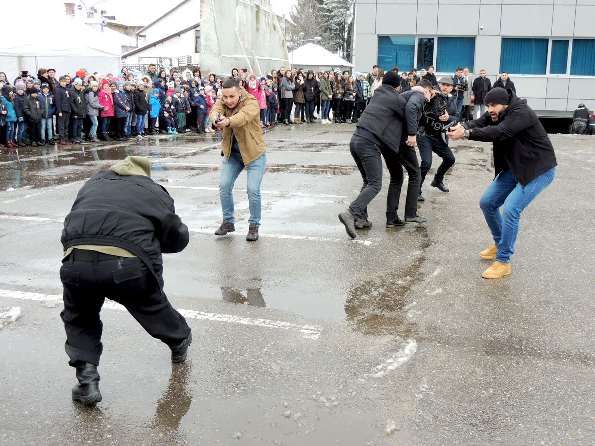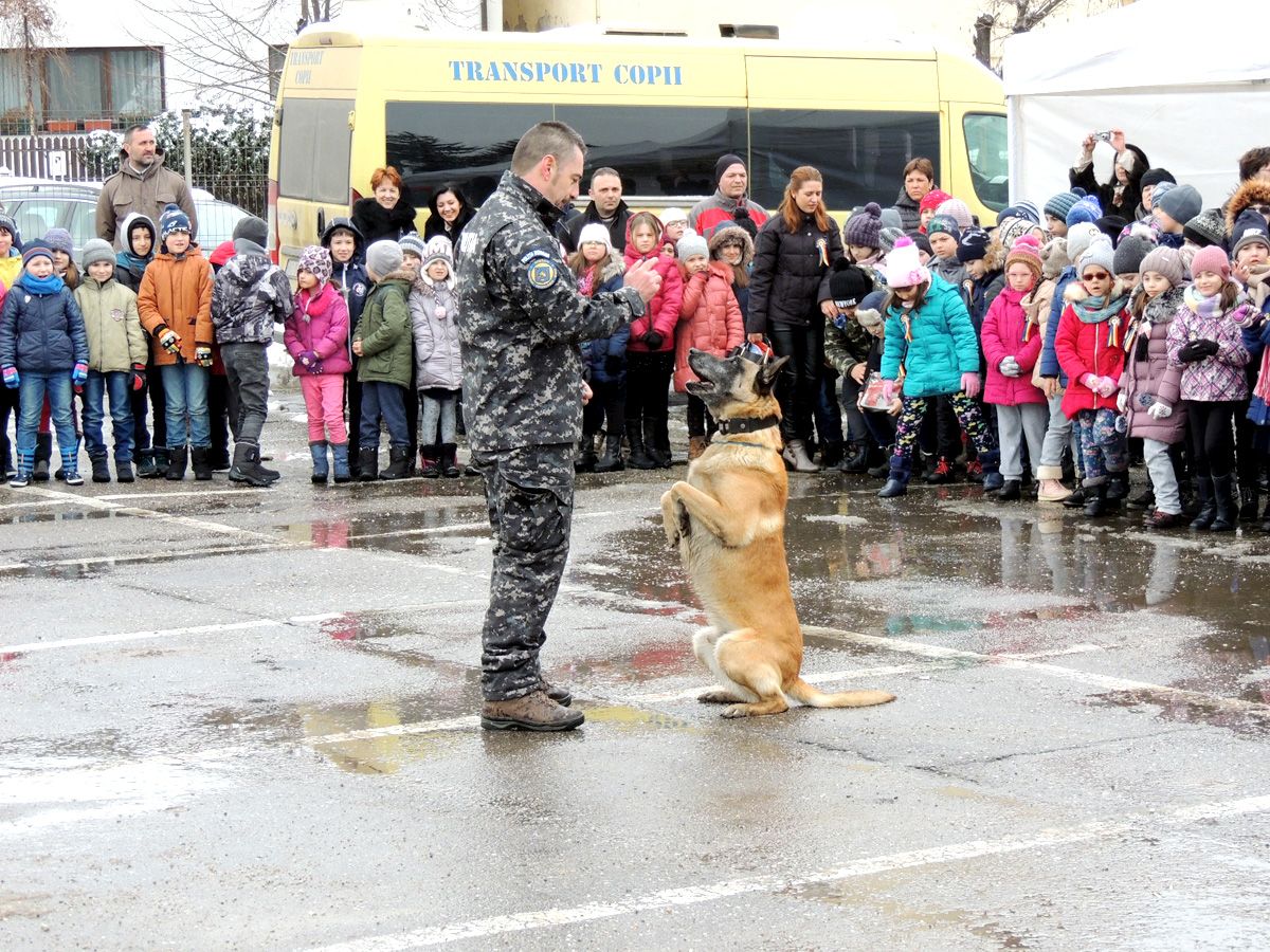 Ieri, între orele 10 şi 12, a fost organizată o Zi a porţilor deschise. Au participat peste 200 de elevi şi preşcolari din 10 unităţi de învăţământ, care au fost primiţi de agenţi ai Serviciului Rutier, respectiv Criminalistic şi de luptători ai Serviciului Acţiuni Speciale. Invitaţi speciali au fost membrii a două echipe canine de la Centrul Chinologic „Aurel Greblea” Sibiu. Ca de obicei, a fost cea mai spectaculoasă şi atractivă activitate desfăşurată ieri la poliţia judeţeană. Când spunem asta avem în vedere faptul că echipele canine au prezentat mai multe exerciţii de dresaj, la care câinii au fost folosiţi pentru imobilizarea infractorilor, inclusiv a unuia care se afla într-un autoturism, dar şi de intervenţie pentru eliberarea unor ostatici, atentatorul fiind pus la pământ tot de câinele poliţist. La rândul lor, luptătorii de la trupele speciale au prezentat un exerciţiu privind paza şi protecţia unui demnitar devenit ţinta unor agresori.