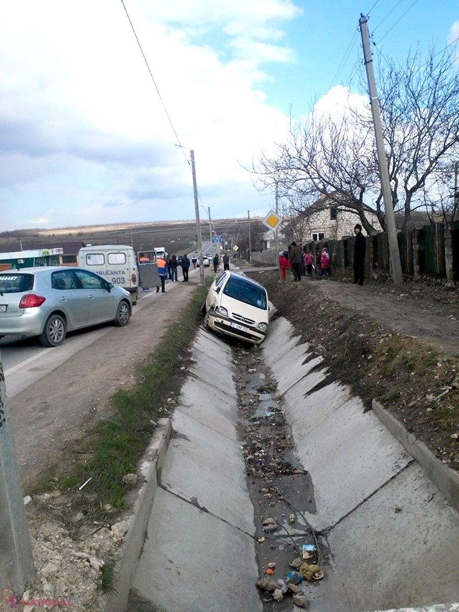 Răniţi într-un Opel ajuns în şanţ