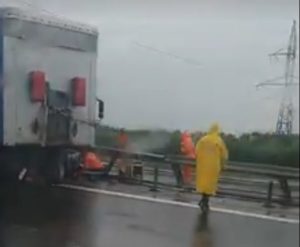 Astfel, azi-dimineaţă, un tir a intrat în parapet la kilometrul 86 al Autostrăzii Bucureşti-Piteşti. La locul incidentului, în urma căruia, din fericire, nu s-au înregistrat victijme, a intervenit un echipaj de la Detaşamentul de Pompieri Bradu, întrucât erau scurgeri de combustibil pe carosabil, precum şi o ambulanţă SMURD. Potrivit agenţilor rutieri, Cristian O., de 41 de ani, din Câmpulung, circula cu un tir dinspre Piteşti către Bucureşti. El urma să ajungă în comuna dâmboviţeană Petreşti, pentru a încărca marfă. Ajuns la km 86, din cauză că nu a adaptat viteza de deplasare la condiţiile meteo-rutiere, carosabilul fiind ud şi alunecos de la ploaie, şoferul a pierdut controlul volanului, iar vehiculul a derapat şi s-a izbit de glisiera metalică de pe mijlocul autostrăzii, pe care a distrus-o pe o porţiune ceva mai lungă. Impactul a fost destul de serios, din moment ce capul tractor al tirului a rămas înfipt în separatorul sensurilor de deplasare. Pentru scoaterea lui a fost nevoie ajutorul unui vehicul de tractare, iar pe timpul acţiunii traficul s-a derulat cu greutate.