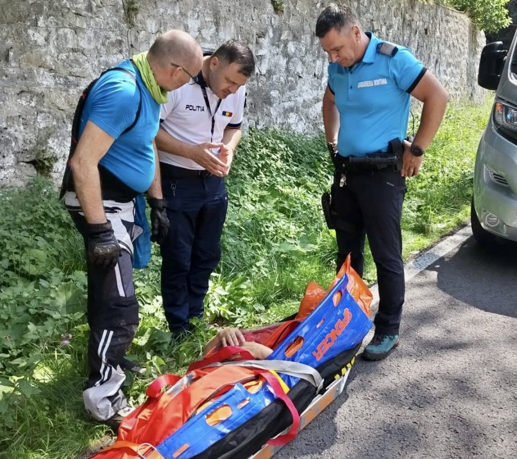 Jandarmii au identificat un bărbat căzut într-o râpă de aproximativ 3 metri și, folosind targa din dotare și colaborând cu membrii echipajului SMURD, au reușit să îl extragă în siguranță.