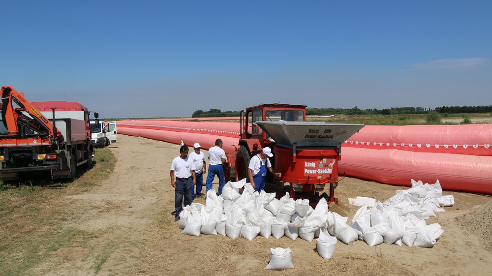 În calea apelor a fost ridicată o linie de apărare constând într-un dig lung de 3.100 metri ridicat pe malul Oltului.