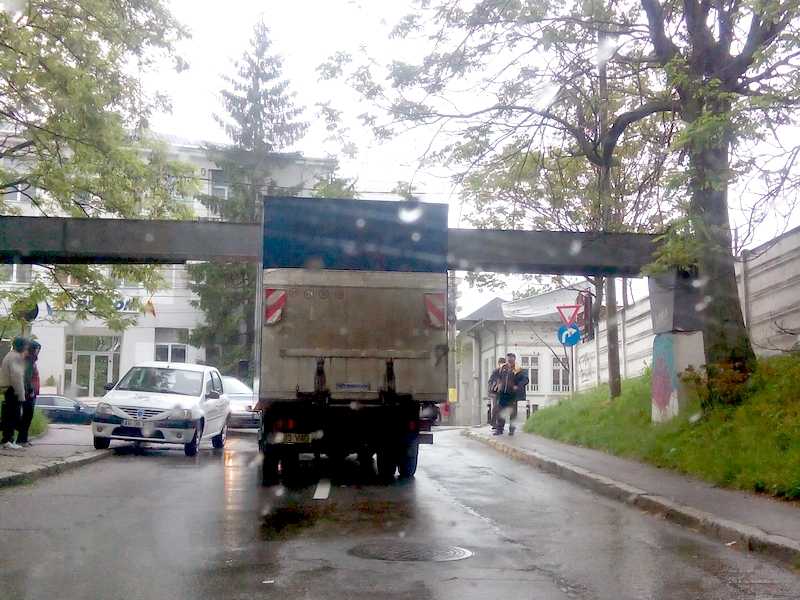 Aşadar, zilele trecute, circulam pe strada Tudor Vladimirescu din Piteşti şi urcam dinspre Autogara Sud către bulevardul Republicii. În faţă era un autocamion cu prelată. Manevrând cu grijă volanul şi înaintând centimetru cu centimetru, că dacă s-ar fi luat la întrecere cu melcul ar fi pierdut cursa, şoferul a reuşit să treacă la mustaţă, cum se zice, pe sub podul de cale ferată. Dar, ca în zicala aia care spune să nu zici hopa până nu treci şanţul, conducătorul auto şi-a dat seama că i s-a cam înfundat. Pentru că la doar 30 de metri distanţă a întâlnit o grindă metalică, plasată acolo parcă anume pentru a face imposibil accesul vehiculelor grele. Iar şoferul nostru, vorba aia, s-a înecat precum ţiganul la mal. Adică, oricât s-a străduit, autocamionul său nu trecea în ruptul capului pe sub grindă. S-a dat el cu maşina ba mai la stânga, ba mai la dreapta, ba pe centru, dar degeaba: nu se încadra şi pace. S-a dat jos omul de la volan, a ocolit maşina, s-a scărpinat în cap, a măsurat înălţimea, însă rezultatul a fost acelaşi: prelata era mai înaltă cu cel puţin un lat de palmă faţă de grindă. Bine cel puţin că a avut inspiraţia să nu forţeze trecerea, că atunci ar fi rămas înţepenit şi ar fi fost nevoie de tractor pentru a scoate autocamionul de sub grindă. Încercările împricinatului au blocat minute bune circulaţia spre şi dinspre bulevard, până când şoferul încurcă lume a ales soluţia cea mai înţeleaptă: a întors (noroc că nu avea remorcă) şi a pornit spre Târgu din Vale, pe unde putea circula nestingherit.