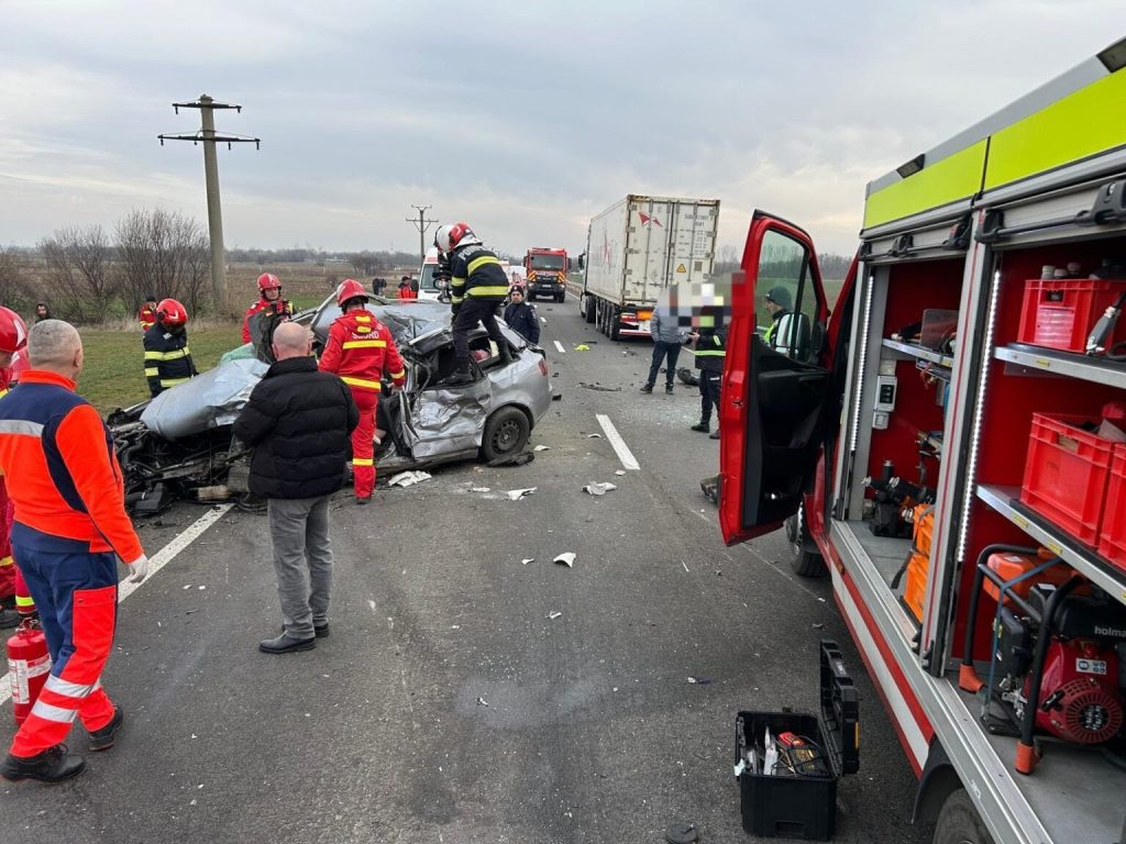 Pompierii mai asigură și măsuri specifice de prevenire a incendiilor, la fața locului fiind identificate scurgeri de lichide combustibile pe partea carosabilă.