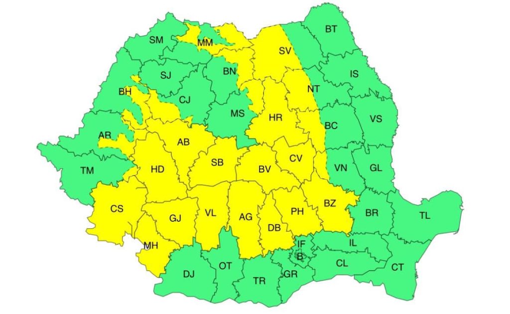 Administrația Națională de Meteorologie (ANM) a emis o atenționare de cod galben pentru instabilitate atmosferică.