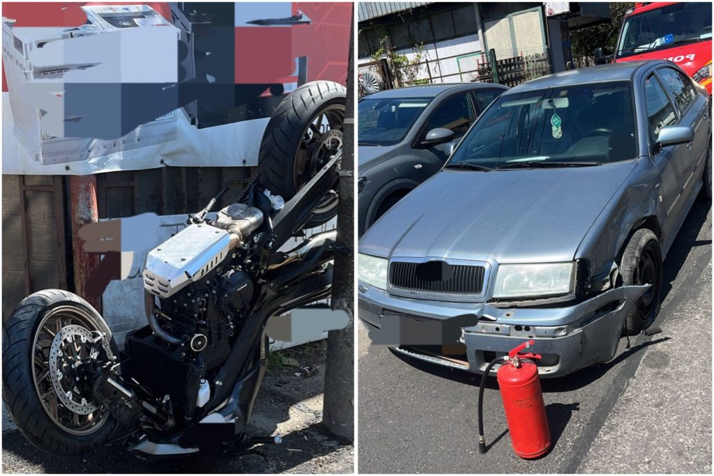 Accident rutier în care sunt implicate o motocicletă și un autoturism, produs în municipiul Pitești, strada Dumbravei.