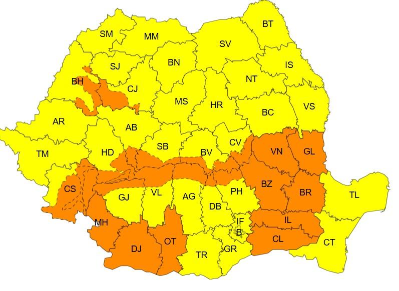 Astăzi, de la ora 12: Evitați deplasările! Harta județelor afectate.