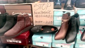 Simpatică foc, o proaspătă bunică din Bucureşti (nepoţelul de trei luni locuieşte cu părinţii în Franţa) promovează încălţămintea „Suceveanu”, aducând la Piteşti o gamă variată de modele pentru bărbaţi, femei şi copii (sunt disponibile şi mărimile gigant!). Produsele din piele sunt cunoscute şi remarcate atât în ţară, cât şi în străinătate. La standul de aici sunt expuşi spre vânzare şi „mergători anatomici”, adică pantofi (225 lei) şi ghete (275 lei) cu branţuri medicinale şi tălpi confortabile, visul picioarelor obosite sau cu platfus.