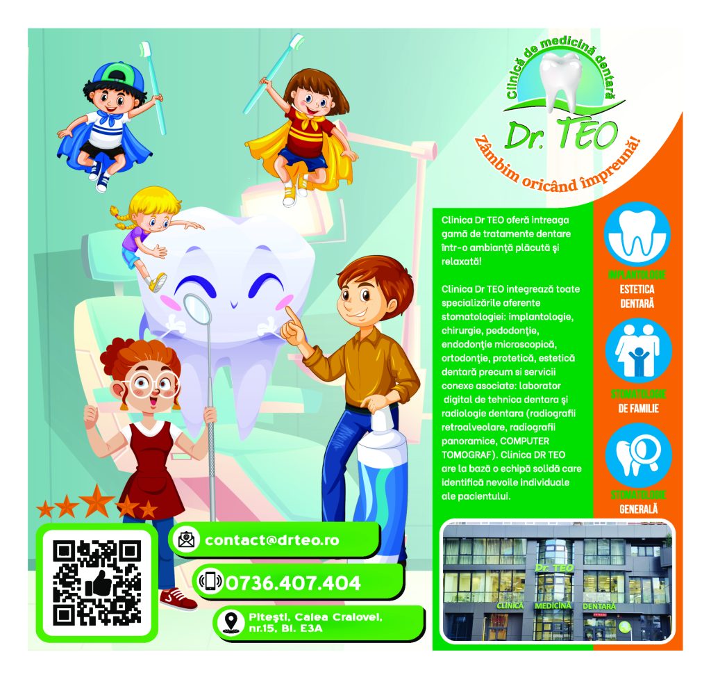 Continuarea acestei decizii a fost momentul în care, în 2016, am deschis Clinica „Dr. Teo”, după care, în 2021, ne-am mutat în actuala locație. Clinica „Dr. Teo” este o societate cu capital 100% românesc, argeșean, dezvoltată și crescută din și pentru nevoile permanente ale pacienților.