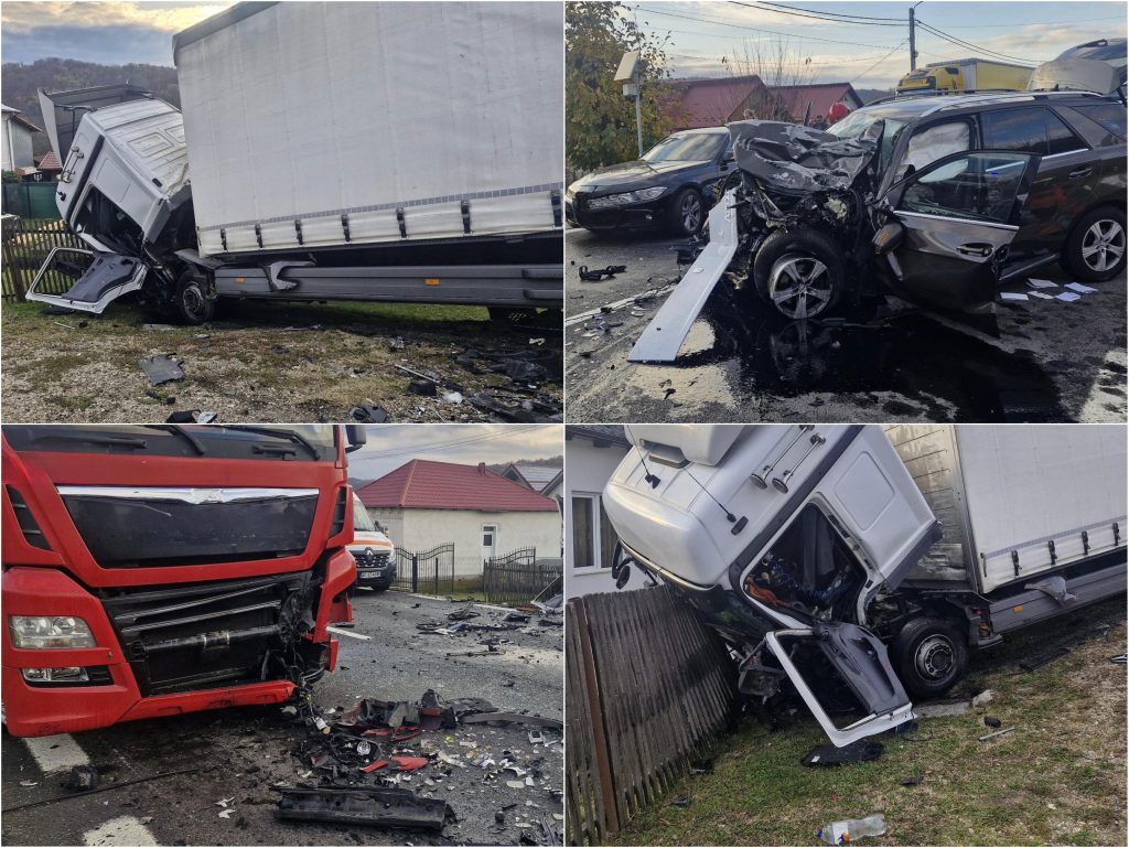 Accident rutier produs în comuna Drăganu, DN7, între două autocamioane și un autoturism.