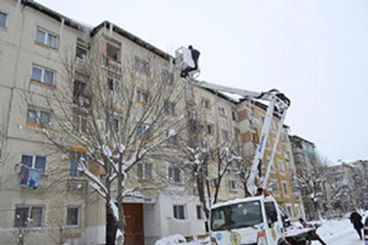 Ţurţuri daţi jos de pe blocuri
