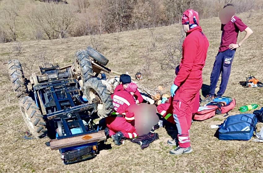 Victima prezenta un traumatism toraco-abdominal, fracturi costale și o plagă tăiată la brațul stâng. După stabilizarea la fața locului, bărbatul a fost preluat de echipajul care încadrează elicopterul SMURD.