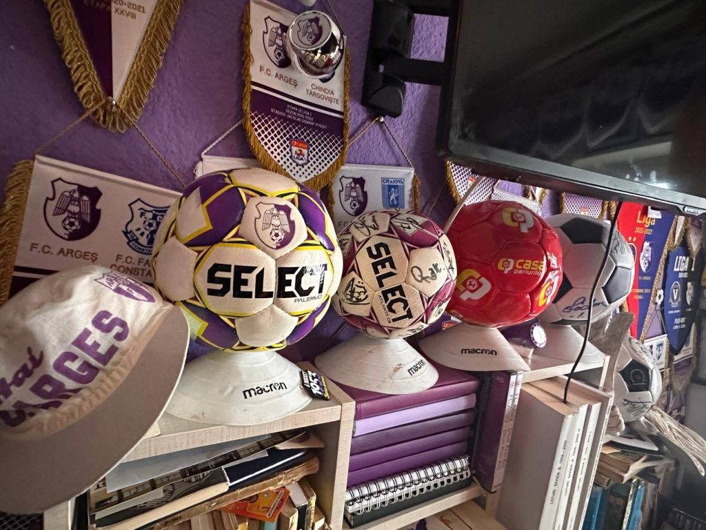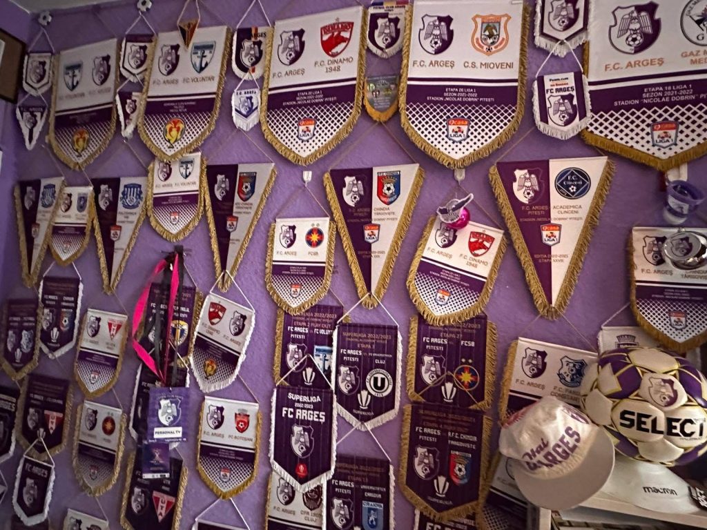Printre piesele rare se află obiecte care datează încă din anii ’30, inclusiv primul fanion al echipei „bunicului” alb-violet, Sporting Pitești. Vizitând colecția, orice fan poate urmări evoluția clubului de-a lungul decadelor, de la primele succese regionale până la perioada de glorie a „echipei de aur” a fotbalului românesc.